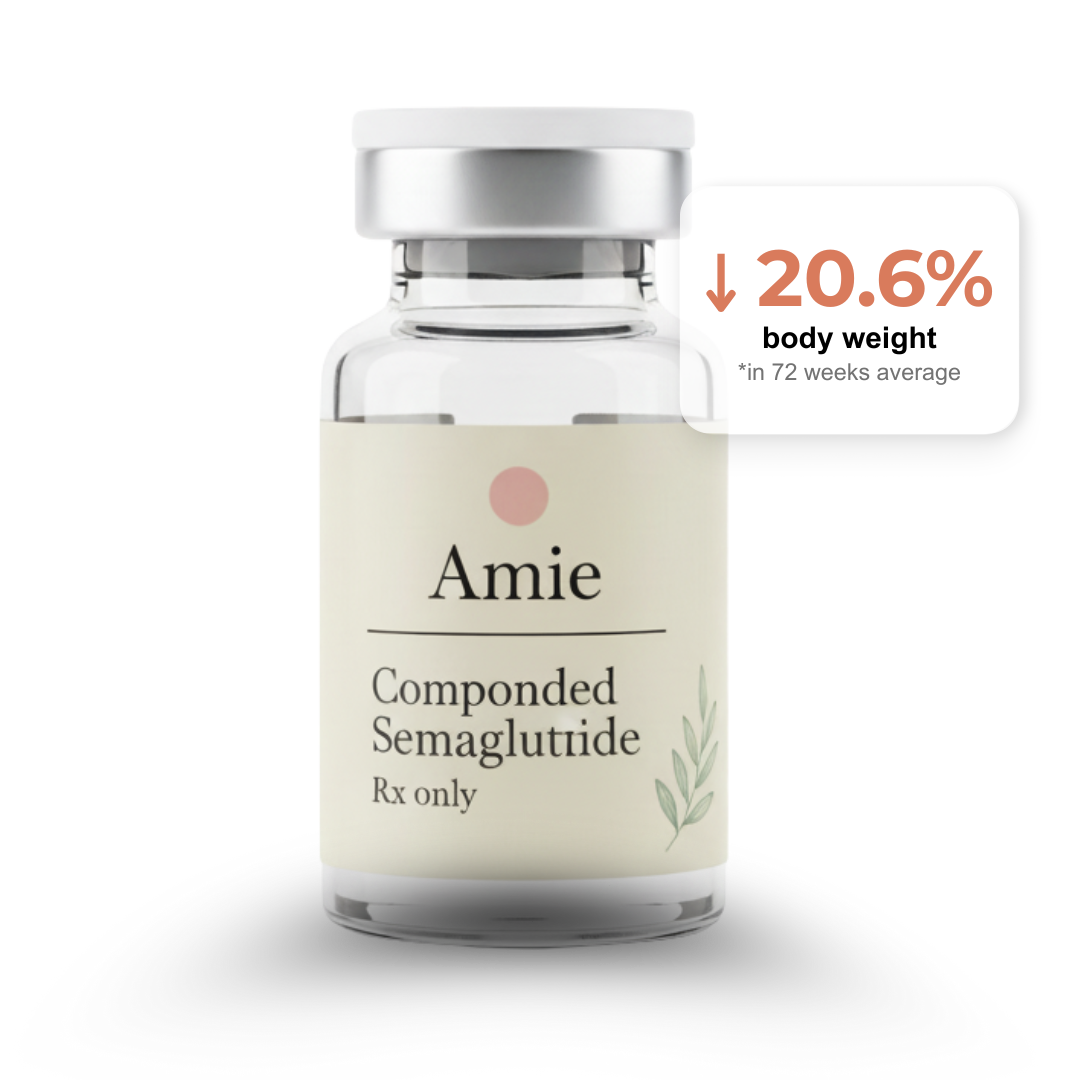Customers report on average 27 lbs weight loss in six months with Amie’s Semaglutide program.
