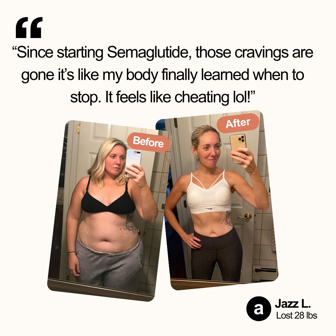 "Being overweight had me feeling down and anxious all the time. Since starting semaglutide, I’ve lost 28 pounds, but what’s really amazing is how much better I feel mentally."