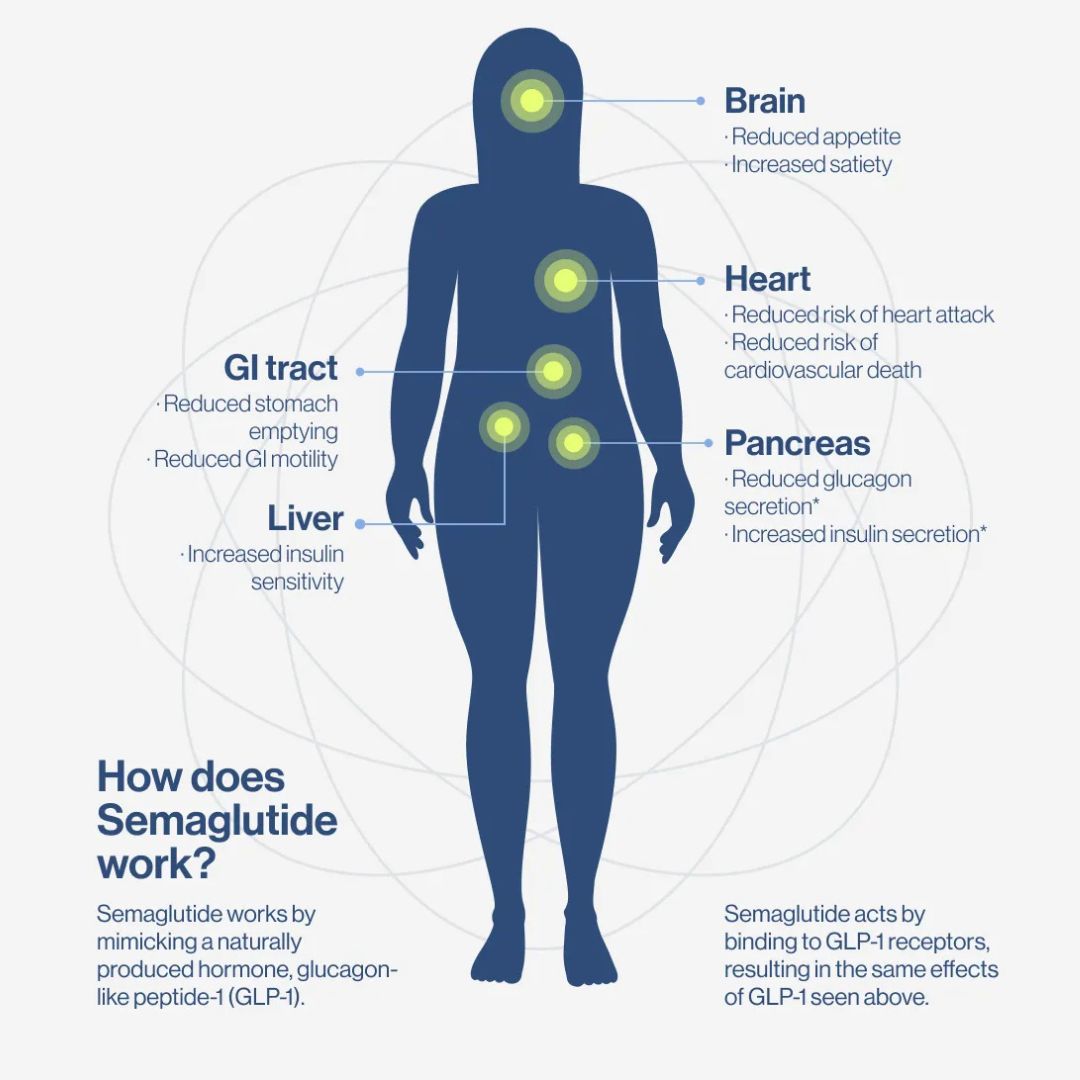 Semaglutide mimics a natural hormone that signals fullness to your brain and slows stomach emptying, helping you stay satisfied longer and eat less.
