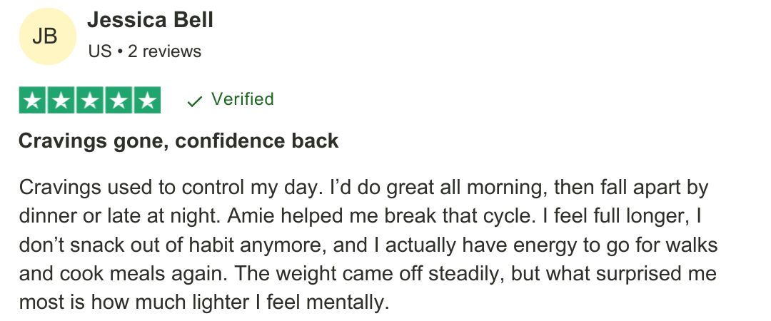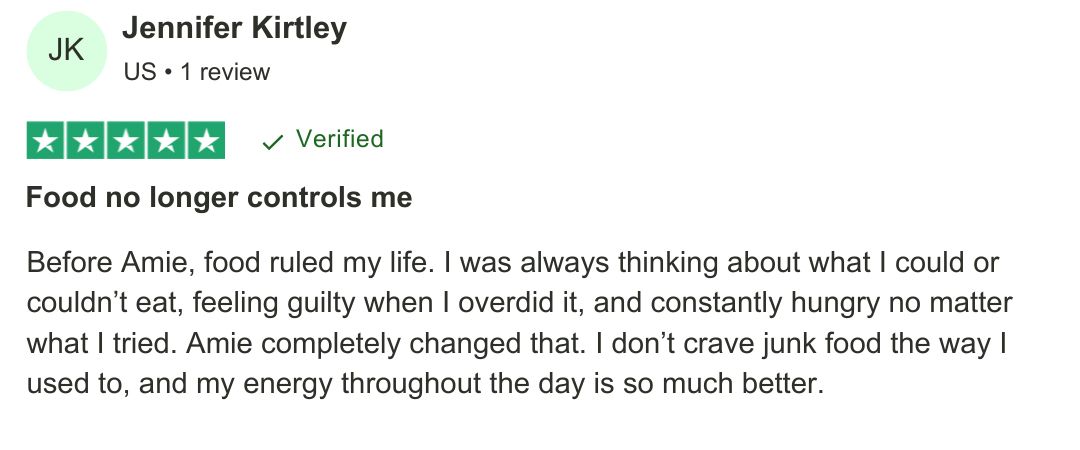 "Amie gave me back control of my life. I’ve dropped 22 pounds, but the biggest win is how much better I sleep and how much more energy I have every single day."